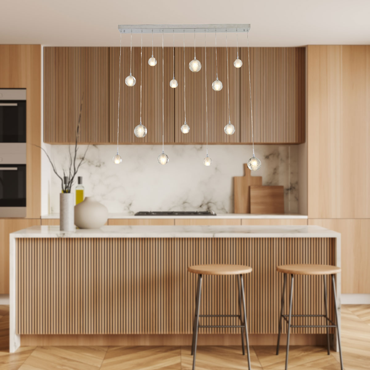 The exquisite chandelier is in a chrome finish. The frame is made out of metal, and it comes with crystal accents in clear color. You can create a timeless feel while using modern forms.